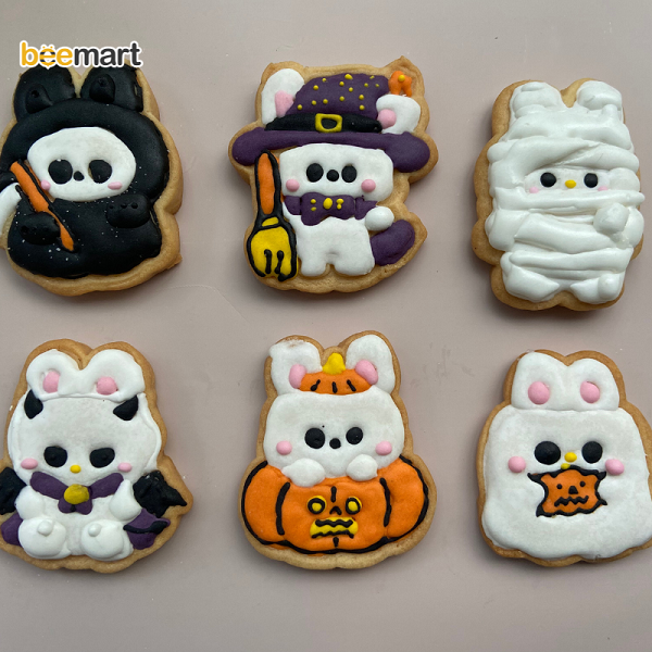 Bánh cookie icing hình thỏ Halloween không chỉ là món trang trí tuyệt vời cho bữa tiệc của bạn mà còn là sự kết hợp hoàn hảo giữa hương vị thơm ngon và hình ảnh đáng yêu của những chú thỏ mang tới mùa Halloween một trải nghiệm vô cùng thú vị.
