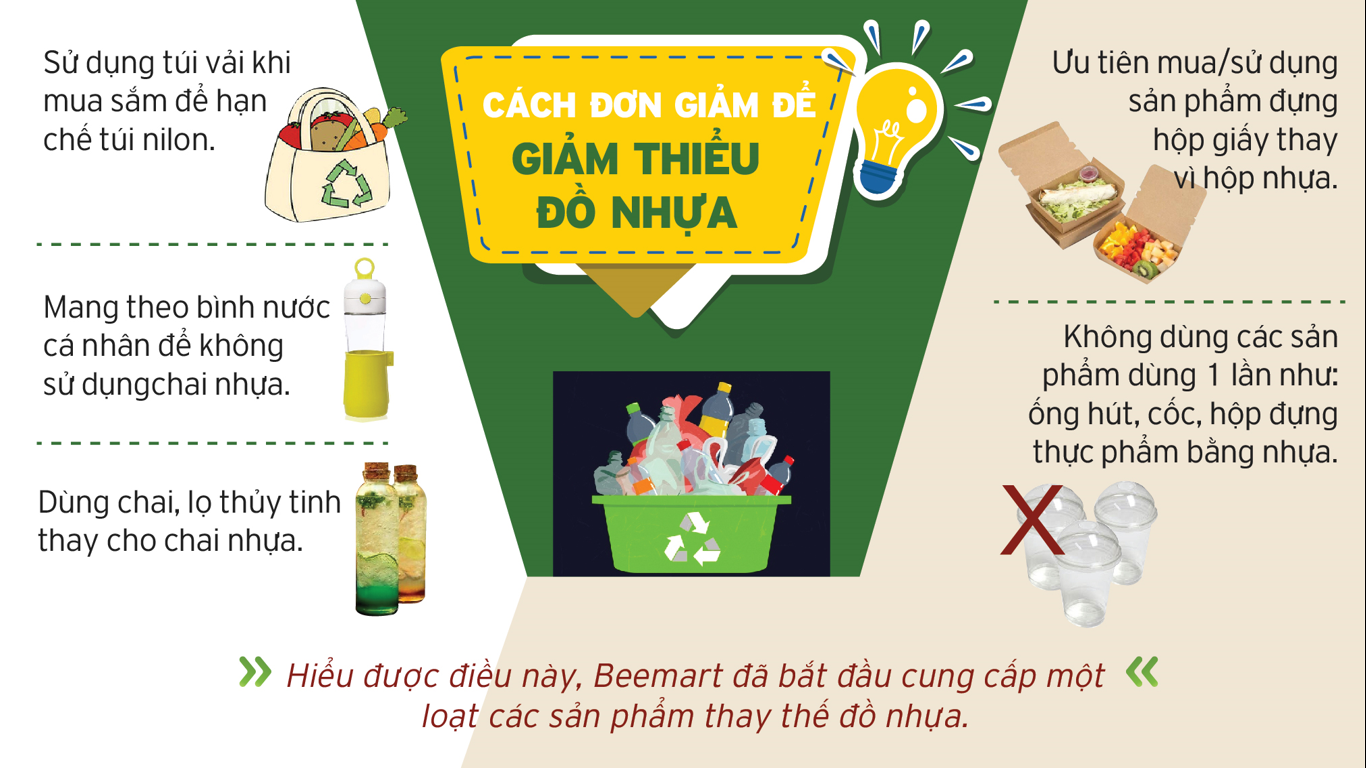 Với mong muốn lan tỏa thông điệp, trong thời gian vừa qua Beemart đã có rất nhiều chương trình cho khách hàng và cả nhân viên nữa đó. Đó là chương trình Đổi nhựa lấy cây, là chế độ ưu đãi cho khách hàng không lấy túi nilong khi mua hàng, hay cả việc dần thay thếtúi nilong thành túi giấy khi giao hàng,... Trong tháng 6 này, để giúp biến những rác thải nhựa thành những vật dụng có ý và ý nghĩa, Beemart đã tổ chức 1 cuộc thi tái chế nho nhỏ cho những chú ong chăm chỉ đấy