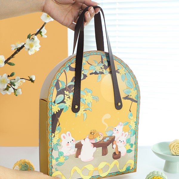 Hộp Trung thu Thỏ đoàn viên có quai xách tiện lợi và hộp con bên trong giúp thuận tiện cho việc di chuyển và thẩm mỹ hơn