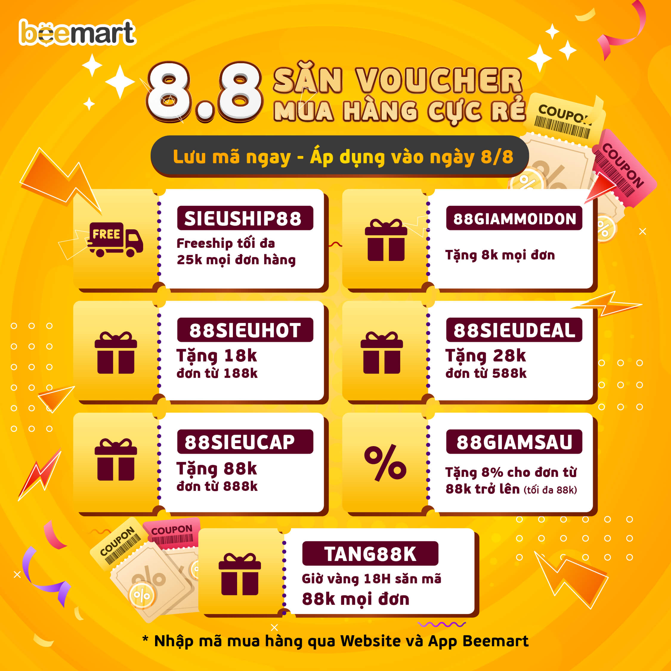 Thời gian diễn ra chương trình duy nhất ngày 8/8 áp dụng cho khách hàng đặt hàng online trên Website, App, Shopee của Beemart.