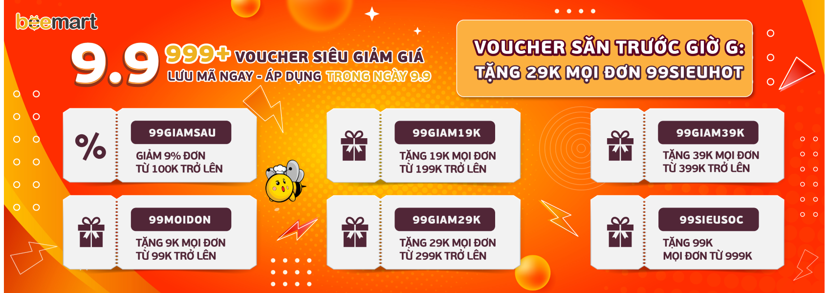 Không chỉ vậy trong ngày 9.9 này bạn còn có cơ hội săn thêm vô vàn Voucher đồ làm bánh siêu xịn lên tới 99K. Mua càng nhiều giảm càng sâu, ghé ngay Beemart vào ngày 9.9 này bạn nha!