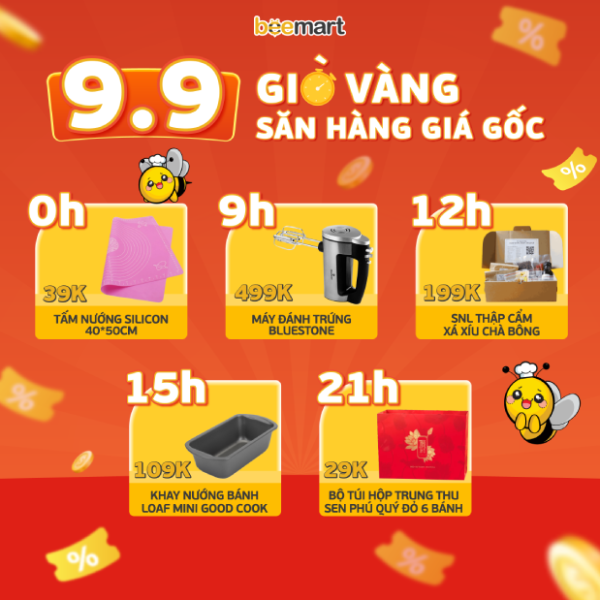 9.9 BÙNG NỔ SALE 9X tất tần tật đồ làm bánh cùng vô vàn voucher siêu hot. Theo dõi bài viết ngay để không bỏ lỡ chương trình nhé!