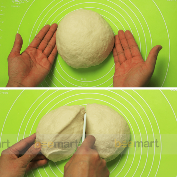 Chia khối bột thành những miếng nhỏ 50g rồi vê tròn lần lượt để bắt đầu tạo hình