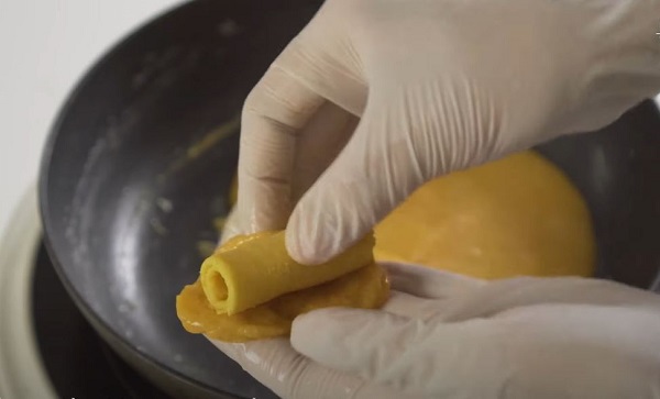 Đợi hỗn hợp Marshmallow, bột sữa và trứng muối nguội bớt (khoảng 60 độ C) thì chúng ta tiến hành tạo hình bánh nhé.
