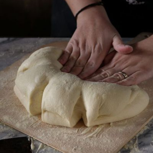 Lưu ý: hãy sử dụng nước đá để tránh trường hợp nhào bột bị nóng sẽ gây chết men nha.