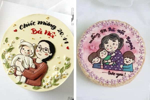 Mẫu bánh kem trang trí nhẹ nhàng mừng sinh nhật bà đầy ý nghĩa và dễ thương