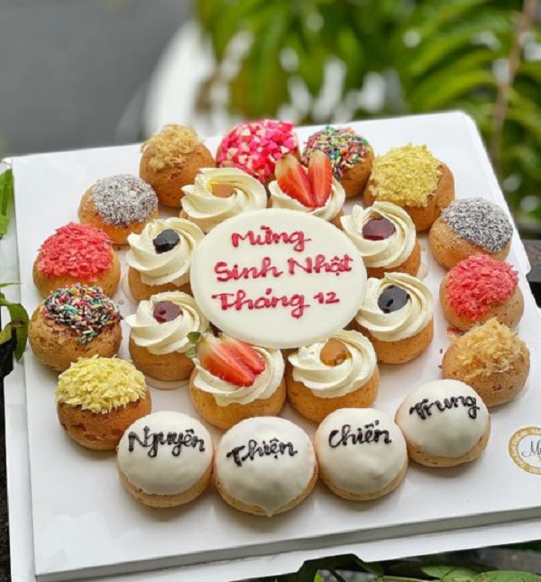 Su kem là món bánh được sử dụng trong những bữa ăn vặt, hay trong các bữa trà chiều. Nhưng gần đây với sự sáng tạo, những chiếc bánh su kem nhỏ xinh được trang trí xếp cạnh nhau để trở thành chiếc bánh sinh nhật độc đáo.