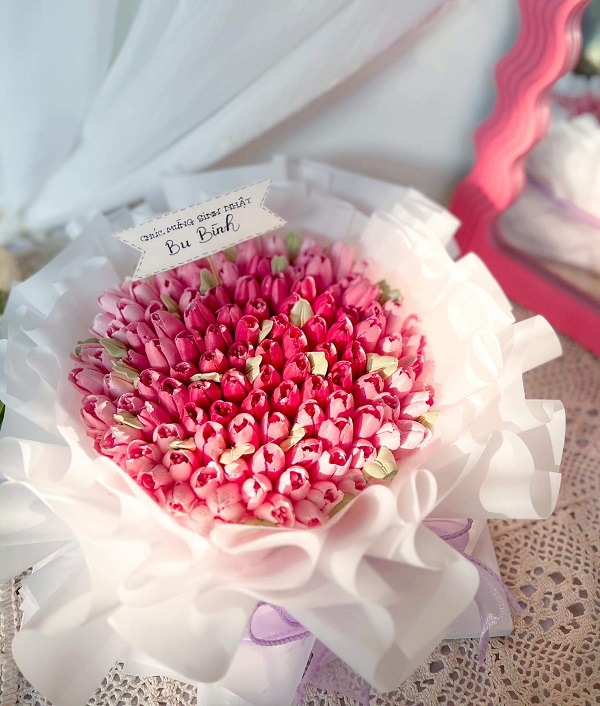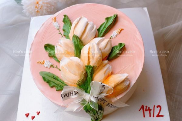 Bánh kem bó hoa tuylip rực rỡ  dành tặng cho mẹ yêu