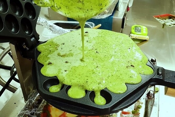 - Lưu ý khi đổ bột vào khuôn nên đổ nhẹ nhàng, tránh đổ nhiều sẽ khiến tràn ra ngoài gây mất thẩm mỹ.