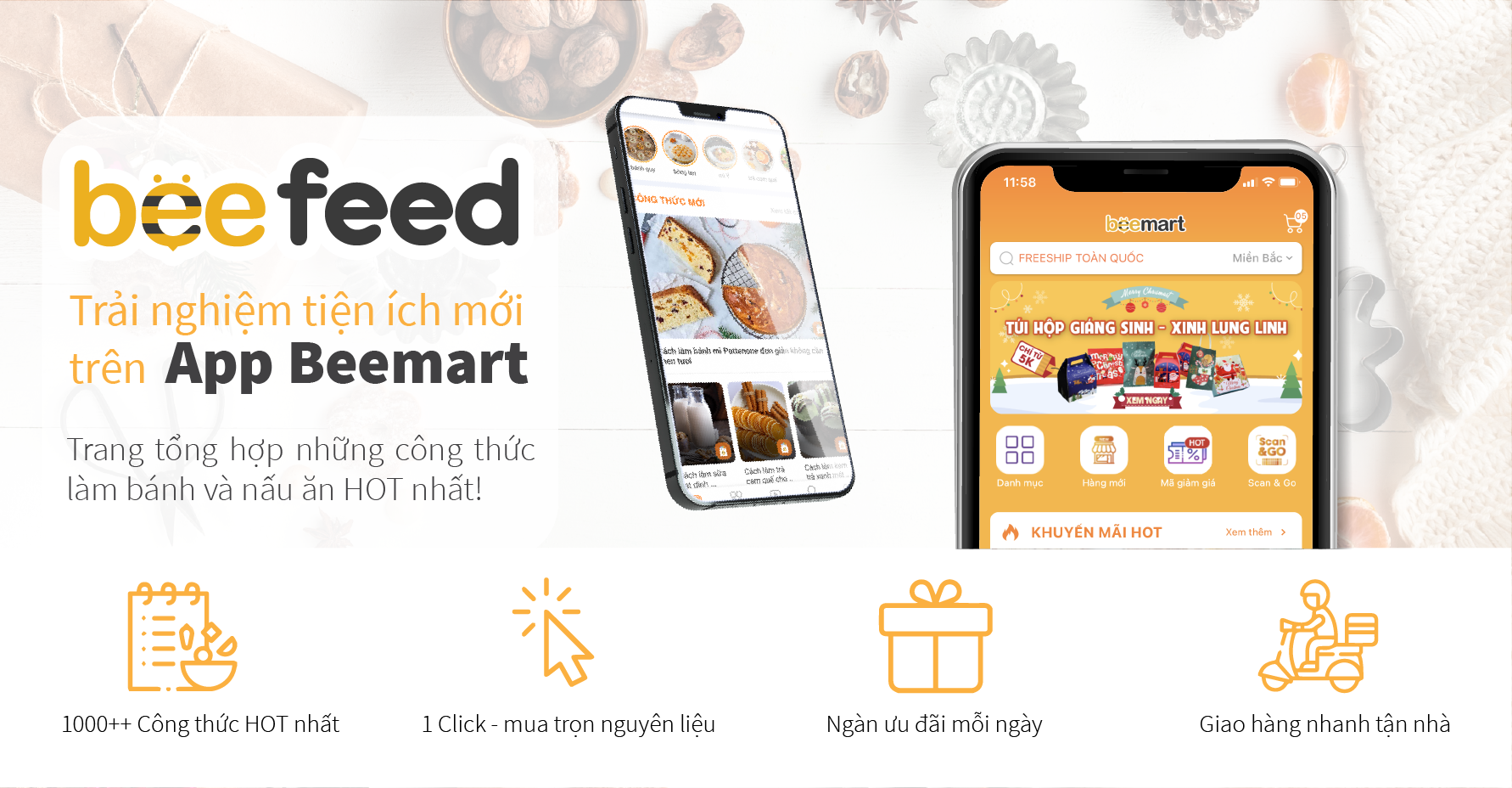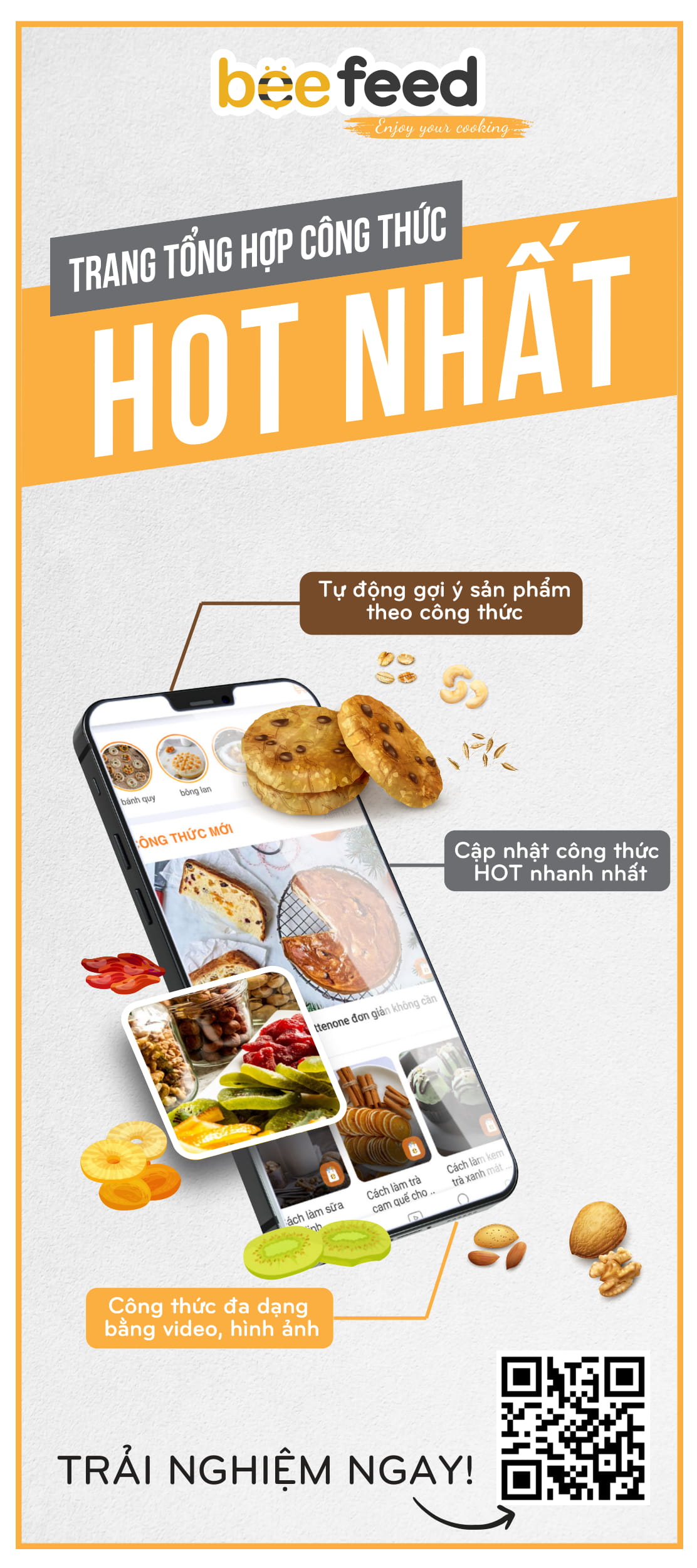 - 1000++ công thức làm bánh, nấu ăn, pha chế đơn giản nhưng Hot nhất sẽ có mặt trên Beefeed, chỉ cần tải App beemart và truy cập vào Beefeed là bạn đã được sống trong bài toán "Hôm nay ăn gì" "Món bánh này làm như nào" hay "Sinh nhật người yêu mình cần làm gì "