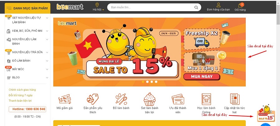Bước 1: Tại trang web của Beemart, bạn click vào banner đầu trang, hoặc chú ong nhỏ góc phải phía dưới màn hình để truy cập vào trang săn sale.