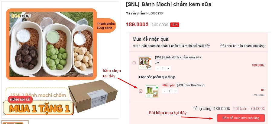 Còn nếu bạn muốn mua số lượng sản phẩm nhiều hơn thì nhớ bấm số lượng sản phẩm quà tặng đi kèm tương ứng.
