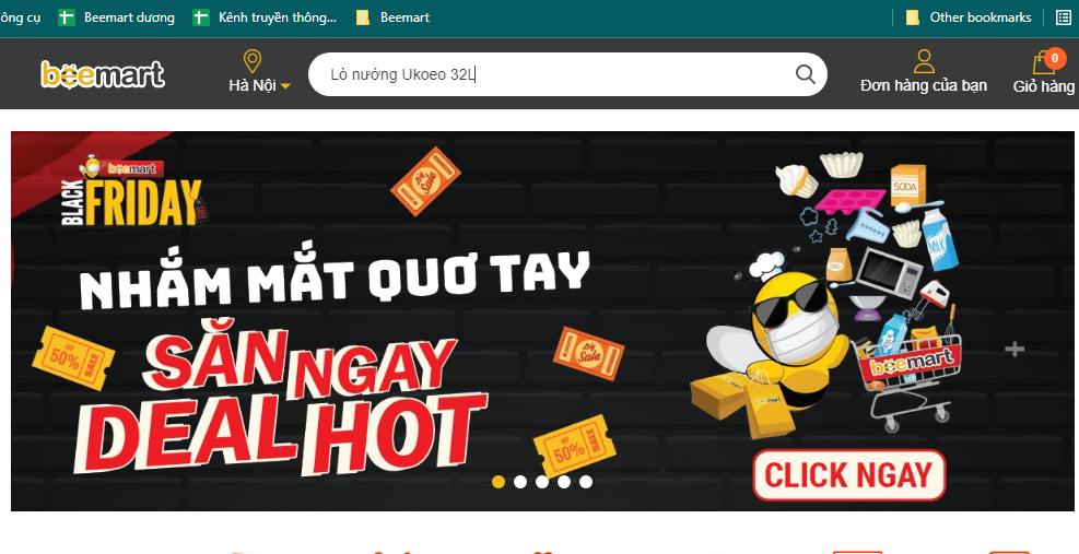 Bước 2: Ở trên thanh tìm kiếm của Website Beemart, bạn hãy gõ tìm kiếm sản phẩm bạn muốn mua để tìm nhanh sản phẩm