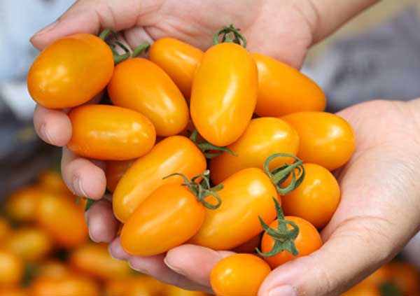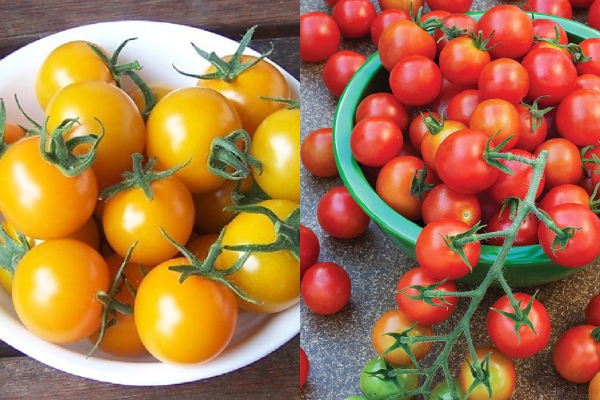 - Cà Cherry Vàng hay còn được gọi là cà chua bi vàng. Đây là giống cà chua được coi như một vầng sáng của các loại cà, tập trung những thế mạnh từ giống lai tạo nên đã làm cho loại quả này hoàn hảo vượt trội hơn rất nhiều. Điểm khác biệt về thành phần dinh dưỡng của Cà Cherry Vàng là không có Lycopene và Vitamin A nhưng bù lại Vitamin C vượt trội hơn, chứa Crom và chất xơ giúp kiểm soát lượng đường trong máu và tốt cho xương.