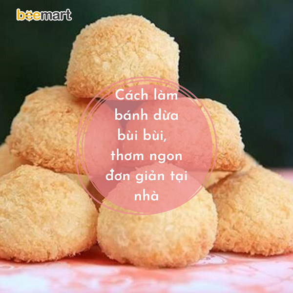 Bánh dừa là món ăn vặt được các tín đồ ẩm thực yêu thích vì sự thơm ngon đến từ miếng bánh và hương vị dừa bùi bùi, beo béo hòa quyện. Để đổi vị cho các thành viên gia đình, hãy cùng Beemart tham khảo các công thức làm bánh dừa tại đây nhé Xem thêm: >> Cách làm bánh quy nhân dừa lá dứa thơm ngon tại nhà Bánh dừa thơm bùi kích thích vị giác của bạn ngay từ miếng đầu tiên. Ăn 1 lại muốn ăn 2, bánh dừa sẽ là một trải nghiệm ẩm thực thú vị cho vị giác của bạn Cách làm Bánh dừa chiên tại nhà Làm bánh dừa chiên thơm giòn với các nguyên liệu - Nước lọc: 250ml - Men khô: 7g - Đường trắng: 1/2 chén - Muối: 1/4 muỗng canh - Bột mì: 544g - Dừa nạo: 128g - Mè: 50g - Dầu ăn: 100ml >> Nếu chưa tìm được nơi mua nguyên liệu làm bánh dừa, bạn có thể tham khảo các thành phần dưới đây nhé: - Men khô: men khô lạt prime 500g - Đường trắng: đường tinh luyện cô ba 1kg - Bột mì: Bột Bakers Choice số 11 bột mì đa dụng - Dừa nạo (Cơm dừa): Cơm dừa loại 1 50gr Làm bánh dừa chiên tại nhà đơn giản với các bước - Bước 1: Trộn bột + Bạn lấy nước ấm, nước cốt dừa, muối, đường và men khô vào tô trộn đều và khoảng 5 phút. Sau đó bạn cho bột mì, dừa nạo vào rồi dùng muỗng trộn đều. + Lưu ý: Khi trộn bột, bạn lưu ý khuấy thật đều tay để hỗn hợp không bị vón cục Trộn hỗn hợp bột + Ủ bột: Để tô hỗn hợp ở nơi ấm trong 1 - 2 tiếng, dùng khăn sạch đậy lại cho hỗn hợp nở gấp đôi. Ủ bột - Bước 2: Chiên bánh + Sau khi ủ bột đủ thời gian và đạt yêu cầu, cho chảo lên bếp, cho dầu ăn vào đun nóng, dùng tay nặn bột thành viên, lăn qua mè rồi thả vào chảo dầu chiên giòn. Bạn chú ý chiên với số lượng vừa phải, không chiên quá nhiều viên bột trong chảo. + Khi chiên bánh, bạn cho dầu ăn ngập bánh để bánh không bị dính và ngon, giòn hơn. Chiên bánh dừa - Bước 3: Hoàn thiện thành phẩm Bánh dừa chiên xong, bạn vớt ra ngoài để ráo dầu là có thể dùng được. Bánh dừa chiên với lớp ngoài giòn tan, bên trong béo ngậy vị dừa rất hấp dẫn. Thành phẩm bánh dừa chiên Cách làm Bánh dừa nướng tại nhà Làm bánh dừa nướng thơm giòn với các nguyên liệu - Cùi dừa tươi nạo sợi: 500gr - Dừa sấy : 100 g - Trứng gà: 1-2 quả - Bột hạnh nhân : 30g - Đường trắng: 150gr - Muối ăn : 1m - Bột vani : 1 ống - Bột mì :40g - Bơ : 20g - Sữa tươi : 200ml Làm bánh dừa nướng tại nhà đơn giản với các bước - Bước 1: Nướng dừa + Cùi dừa tươi sau khi đã nạo sợi nhỏ các bạn trải đều ra khay nướng rồi tiếp đó cho khay vào lò ở nhiệt độ 180 độ C. Nướng trong vòng 4 phút rồi lấy khay dừa ra để nguội. + Dừa nướng yêu cầu phải trắng mịn không bị cháy làm mất vị ngọt của dừa cũng như mùi thơm - Bước 2: Hòa hỗn hợp các nguyên liệu với dừa nướng + Đầu tiên lấy một cái bát tô to cho 40g bột mì, bơ 20g, đường 150g, bột hạnh nhân 30 g, sữa tươi 200ml trộn đều lên. Lưu ý ở bước này bạn nhớ rây bột mì một lượt cho mịn và ngon hơn + Tiếp theo cho 2 quả trứng gà đập vào một cái bát con tách lấy lòng trắng, khuấy đều. Tiếp đó, trộn lòng trắng trứng vào phần bột ở trên rồi khuấy đều cho đến khi hỗn hợp nổi bọt và không bị vón cục là được.Khuấy đều tay nếu có hơi đặc thì bạn có thể thêm chút nước + Cuối cùng, khi dừa đã nguội bạn trộn tất cả các nguyên liệu đã được hòa vào với nhau và trộn thành một hỗn hợp đồng nhất, nhớ khuấy đều tay Bước 3: Nướng bánh dừa + Cách làm bánh dừa nướng rất là đơn giản sau khi đã trộn xong hỗn hợp thì bạn rửa sạch tay, thoa lên tay một ít dầu ăn và bắt đầu vo từng viên bánh thành những viên tròn đều hoặc có thể bạn đi bao tay nilong và cho dầu vào tay rồi nặn bánh cho đảm bảo vệ sinh + Sau khi đã vo xong hết nguyên liệu thành từng viên bánh thì các bạn xếp bánh lên vỉ có lót giấy nướng. Tiếp đó, cho vỉ vào lò nướng đã để ở nhiệt độ 180 độ C. Nướng trong khoảng 20 phút đến khi thấy bánh dừa có màu vàng đều thì các bạn lấy vỉ bánh ra và để nguội. - Bước 4: Thưởng thức bánh dừa nướng + Bánh dừa nướng có mùi thơm, vị bùi ngon và giòn. Đặc biệt, màu vàng của bánh rất là bắt mắt và hấp dẫn đấy + Tùy vào số lượng người ăn mà bạn gia giảm các gia vị cho phù hợp để bánh dừa ngon hơn + Bạn nên bảo quản bánh dừa ở nơi thoáng mát tránh ánh nắng trực tiếp và nếu không sử dụng thì bạn nên để vào tủ lạnh lúc sau lấy ra ăn bánh vẫn được giòn Cách làm bánh dừa sấy tại nhà Làm bánh dừa sấy đơn giản với các nguyên liệu - Trứng gà: 3 quả - Đường trắng: 50g - Dừa nạo : 110g Làm bánh dừa sấy đơn giản với các bước - Bước 1: Sơ chế nguyên liệu + Bạn lấy trứng gà đập ra tô, tách lấy lòng trắng trứng. Tiếp theo, bạn cho đường trắng vào, dùng dụng cụ đánh trứng đánh đều cho lòng trắng nổi bọt và bông lên. Sơ chế nguyên liệu bánh dừa sấy - Bước 2: Trộn d