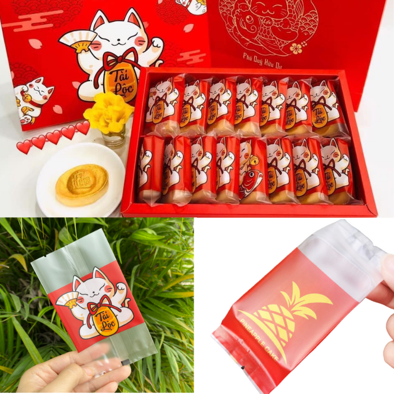 Bánh dứa Đài Loan là món quà Handmade được nhiều chị em lựa chọn làm tặng cho những người thân yêu của mình bởi mọi người tin rằng món bánh này mang lại sự may mắn và thịnh vượng cho những ngày đầu năm mới. Và để món quà thêm phần hoàn hảo, bánh ngon thôi là chưa đủ, những chiếc túi đựng bánh dứa đẹp là một phần không thể thiếu. Hôm nay bạn hãy cùng Beemart điểm danh top 6 mẫu túi đựng bánh dứa đẹp được nhiều chị em lựa chọn trong năm 2020 này nhé!! >>> Xem thêm khuôn lò xo hình quả dứa giúp làm bánh dứa đẹp mắt và tiện lợi hơn TẠI ĐÂY >>> Xem thêm Bí quyết làm bánh quy Tết siêu ngon, siêu đẹp cho bạn mới bắt đầu TẠI ĐÂY Top 6 mẫu túi đựng bánh dứa đẹp được nhiều chị em lựa chọn nhất năm 2020 Theo quan niệm của người dân xứ Đài, bánh dứa mang đến may mắn cho những người thưởng thức nó. Vì điều này mà bánh dứa trở thành món quà mang nhiều ý nghĩa, đáng trân trọng và thể hiện tình yêu thương, thành ý của người mang tặng. Bánh dứa Đài Loan với lớp vỏ ngoài giòn tan thơm ngon cùng vị nhân dứa dẻo dẻo, chua chua ngọt ngọt chắc chắn sẽ làm bất cứ ai mê mẩn ngay từ lần đầu thưởng thức. Hôm nay cùng Bee tìm hiểu các mẫu túi đựng bánh dứa đẹp để món quà của bạn thêm phần hoàn hảo nhé!! Các Mẫu Túi đựng bánh dứa đẹp nhất 2020 Túi đựng bánh quy dứa vàng chữ Love Túi đựng bánh dứa vàng chữ Love được thiết kế màu vàng là màu chủ đạo kết hợp với hình quả dứa in nổi trên mặt túi sẽ giúp những chiếc bánh của bạn thêm phần bắt mắt, nổi bật hơn. Mặt trước của túi là chữ Love với font chữ cách điệu, uốn lượn đẹp mắt không chỉ làm tăng thêm vẻ đẹp cho túi mà còn thể hiện được tình yêu bạn dành cho những người thân thương của mình. Túi đựng bánh dứa Handmade Pineapple Cake Mẫu túi thứ 2 Bee muốn giới thiệu đến bạn có chính là các mẫu túi đựng bánh dứa Handmade Pineapple Cake. Mẫu túi này có 3 loại khác nhau về màu sắc và kiểu dáng là: Túi đựng bánh quy dứa màu cam nhạt Handmade Pineapple cake Túi đựng bánh quy dứa màu trắng đục Handmade Pineapple cake Túi đựng bánh quy dứa màu kem Handmade Pineapple cake. 3 mẫu này đều có chung phong cách thiết kế là các hình quả dứa in trên túi đều là hoạ tiết vẽ tay nên nhìn rất cute đáng yêu. Chữ Handmade Pineapple Cake ở mặt trước của túi với kiểu font chữ cách điệu uốn lượn giúp túi thêm phần đẹp mắt hơn. Các mẫu túi này rất thích hợp để đựng bánh để mang đi tặng bạn bè hoặc những người thích sự đáng yêu, dễ thương đó Túi đựng bánh dứa Pineapple cake Túi đựng bánh Pineapple cake có 2 mẫu với màu sắc khác nhau là hồng và đỏ để cho bạn lựa chọn.. Túi đựng bánh dứa Pineapple cake màu hồng Túi với hoạ tiết hình quả dứa màu vàng đơn giản nổi bật ở mặt trên của túi giúp cho những chiếc bánh của bạn thêm phần bắt mắt hơn. Thiết kế lạ mắt một đầu là mặt trong giúp bạn cũng như người được tặng nhìn thấy được một phần bánh dứa ở bên trong. Túi đựng bánh dứa Pineapple cake màu đỏ Túi đựng bánh Pineapple cake với hoạ tiết đơn giản, trang nhã phù hợp để bạn mang đi biếu tặng hoặc kinh doanh Túi đựng bánh dứa mờ hình biểu tượng cảm xúc Nếu bạn đang tìm một mẫu túi đựng bánh dứa phá cách, đáng yêu thì túi đựng bánh dứa hình biểu tượng cảm xúc chính là lựa chọn tuyệt vời cho bạn. Thiết kế mặt mờ trong cho bạn nhìn thấy được những chiếc bánh bên trong của mình. Thêm đấy mặt ngoài túi là 4 mặt hình quả dứa biểu tượng các xúc vô độc lạ sẽ mang tới cảm xúc thích thú cho người được tặng. Nếu bạn đã quá chán với các mẫu túi đựng bánh dứa bình thường thì lựa chọn Túi đựng bánh dứa mờ hình biểu tượng cảm xúc cũng không tệ Túi đựng bánh cookies trong hoa tiết Túi đựng bánh cookies trong hoa tiết có hai màu là màu hồng và màu trắng với hoạ tiết hoa hồng đơn giản nhưng vẫn không kém phần bắt mắt. Một mặt của túi là mặt trong cho bạn nhìn rõ được các vân hay hoạ tiết trên mặt bánh cũng như giúp những chiếc bánh của bạn vệ sinh lại không kém phần đẹp mắt hơn. Túi đựng bánh cookies trong hoa tiết này là mẫu túi đựng bánh dứa có kiểu dáng đơn giản, trang nhã phù hợp để mang đi biếu, tặng hoặc kinh doanh Túi đựng bánh cookies hình mèo tài lộc Mẫu túi đựng bánh dứa cuối cùng Bee muốn giới thiệu đó đó chính là túi đựng bánh cookies hình mèo tài lộc. Mèo tài lộc vẫn luôn được biết đến là biểu tượng của sự may mắn, thịnh vượng và giờ đây với hoạ tiết mèo tài lộc trên những chiếc túi, đây sẽ tượng trưng cho những điều may mắn, tốt lành mà bạn muốn dành tặng cho những người thân yêu của mình. Màu sặc đỏ may mắn nổi bật cùng một đầu là thiết kế trong giúp vừa nhìn được bánh bên trong lại giúp những chiếc bánh thêm phần thu hút, đẹp mắt hơn. Mẫu túi đựng bánh cookies mèo tài