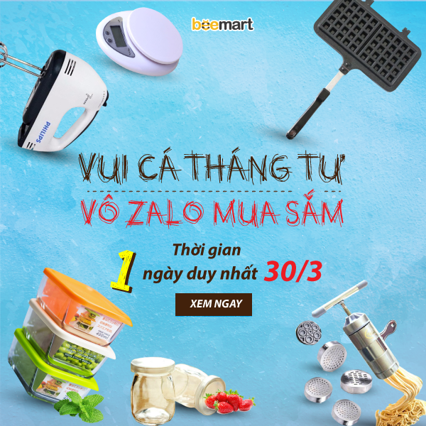 Chào đón Cá tháng 4, duy nhất 30/3/2018, cùng VÔ ZALO BEEMART để nhận ngay GIẢM GIÁ LÊN ĐẾN 50% hàng chục sản phẩm hấp dẫn nhất! DANH SÁCH SẢN PHẨM SALE TẠI ZALO BEEMART NGÀY 30/3/2018 STT TÊN SẢN PHẨM MÃ GIÁ NIÊM YẾT GIÁ SALE % SALE 1 Ống ép mì sợi tại nhà - 5 đầu nút DC00223 180,000 126,000 30 2 Máy đánh trứng Philips 6610 DC00226 150,000 99,000 34 3 Khuôn socola 3D hình giày KB00550 300,000 186,000 38 4 Khuôn cupcake 12 ô to cao cấp DC00509 200,000 140,000 30 5 Khuôn tart chữ nhật 18cm Chefmade WK9210 KB00728 130,000 91,000 30 6 Khay nướng TT Luminarc Oval 35x27cm LMN1339 120,000 84,000 30 7 Chai thủy tinh vuông 350ml- set 10 chai DC00277 200,000 140,000 30 8 Chảo nướng waffle 2 bánh DC00055 350,000 245,000 30 9 Bộ khuôn cutter 26 chữ cái KB00738 200,000 100,000 50 10 Cup đong inox 4 chiếc DC09067 120,000 84,000 30 11 Dao cắt bánh răng cưa DC00111 150,000 105,000 30 12 Hộp nhựa đựng thực phẩm 630ml- Set 2 hộp AP3004 120,000 84,000 30 13 Dụng cụ làm bếp 5 món màu đen DC01012 220,000 143,000 35 14 Dụng cụ làm bếp 5 món màu đỏ DC1011 220,000 143,000 35 15 Cân điện tử Electronic Kitchen Scale DC00148 150,000 90,000 40 16 Hũ thuỷ tinh sữa chua caramen -set 10 chai DC00167 60,000 42,000 30 17 Khuôn nướng bánh 12 ô vuông Chefmade WK9149 200,000 140,000 30 18 Dao chà láng thẳng Chefmade 10'inch WK9272 160,000 112,000 30 19 Khuôn tart tròn 24cm Chefmade WK9063 KB00725 130,000 91,000 30 20 Khuôn bánh mỳ gối cao cấp Chefmade WK9054 KB00674 230,000 161,000 30 21 Khuôn nhấn bánh cookies dứa - set 10 khuôn KB00953 100,000 70,000 30 22 Khuôn cakepop - set 2 khuôn KB00440 180,000 126,000 30 23 Combo dụng cụ ép và nạo inox 138,000 94,000 30 24 Hộp nhựa đựng thực phẩm White Pack 1L- Set 2 hộp AP3001 100,000 70,000 30 25 Hộp thủy tinh 400ml nắp be - set 2 hộp AP2503 180,000 126,000 30 26 Hộp thủy tinh 400ml nắp cam - set 2 hộp AP2502 180,000 126,000 30 27 Hộp thủy tinh 400ml nắp xanh - set 2 hộp AP2501 180,000 126,000 30 28 Set 3 hộp thủy tinh 400ml đủ màu(be+cam+xanh) 270,000 189,000 30 29 Hộp thủy tinh có nắp đậy loại màu hồng tròn 420ml - set 2 hộp AP2402 116,000 81,200 30 30 Hộp thủy tinh kim cương có nắp đậy màu xanh 420ml- set 2 hộp AP2401 116,000 81,200 30 Số lượng sản phẩm có hạn >>> NHANH TAY VÔ ZALO BEEMART để nhận được ƯU ĐÃI HẤP DẪN NHẤT!! Chúc các bạn may mắn! Thông tin liên hệ: CÔNG TY CỔ PHẦN BEEMART Website: beemart.vn Shopee: shopee.vn/beemart123 & shopee.vn/beemarthcm.123 Zalo: shop.zalo.me/store/1973485012463115684 Youtube: http://bit.ly/BeemartYoutubeChannel Kinh nghiệm làm bánh: blog.beemart.vn Hệ thống cửa hàng: Đ/c 1: Số 5 Ngõ 26 Nguyễn Khánh Toàn Hà Nội Đ/c 2: Số 25B Nguyễn Ngọc Vũ Hà Nội Đ/c 3: Số 246 Lò Đúc, Hai Bà Trưng, Hà Nội Đ/c 4: Số 257 Đà Nẵng, Ngô Quyền, Hải Phòng Đ/c 5: Số 102 Võ Thị Sáu, Q.1, TP.HCM Đ/c 6: Số 212 Âu Cơ, Q.Tân Bình, TP.HCM Hotline: 1900 636 546 Email: support@beemart.vn