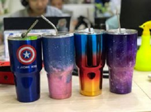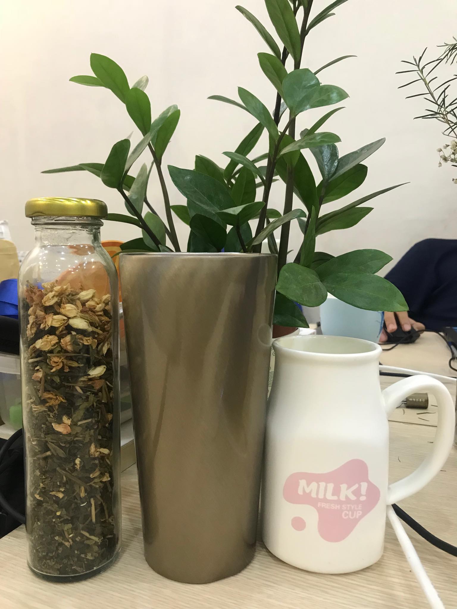 Ở một view khác có cốc sứ, cốc inox và lọ trà xinh xinh cũng tốt cho sức khỏe lắm đấy ^^