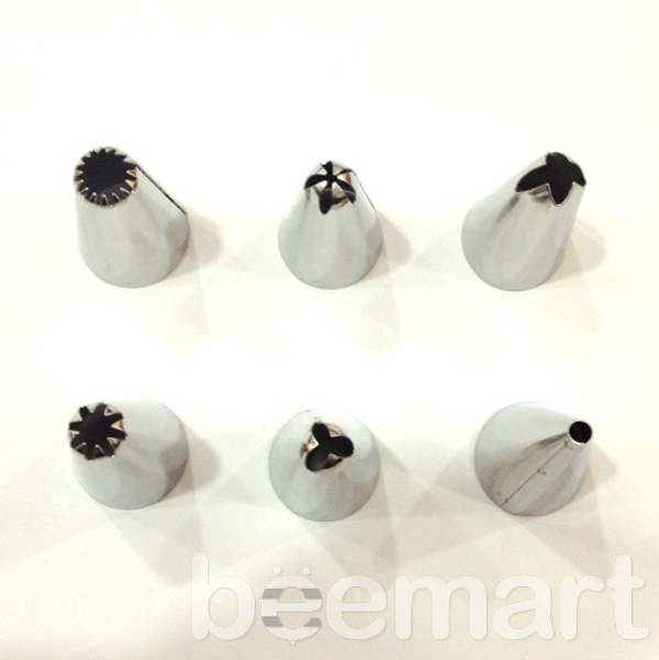 Với 6 đui khác nhau, bạn có thể tha hồ sáng tạo trên chiếc bánh của mình.Đặc biệt sản phẩm được làm bằng inox nên sẽ an toàn tuyệt đối trong quá trình sử dụng cũng như sử dụng nhiều lần mà không lo bị hỏng.