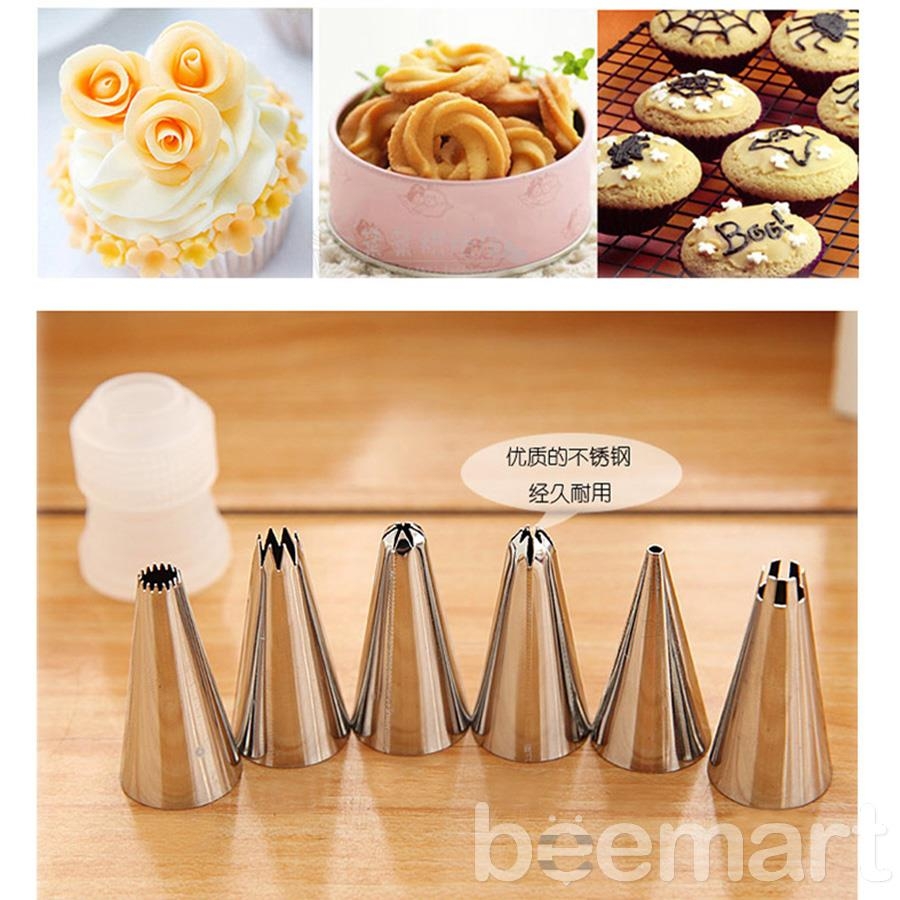 Với mỗi đui bắt kem sẽ cho ra một hoa văn khác nhau. Vì vậy chỉ cần một bộ đui bắt kem tầm 3-5 chiếc, bạn đã có thể trang trí chiếc bánh thật rực rỡ, phong phú. Ngoài ra khi mua sản phẩm của chúng tôi bạn sẽ được tặng kèm túi bắt kem. Bộ dụng cụ này sẽ giúp bạn có những chiếc bánh độc đáo như ý muốn nhé!