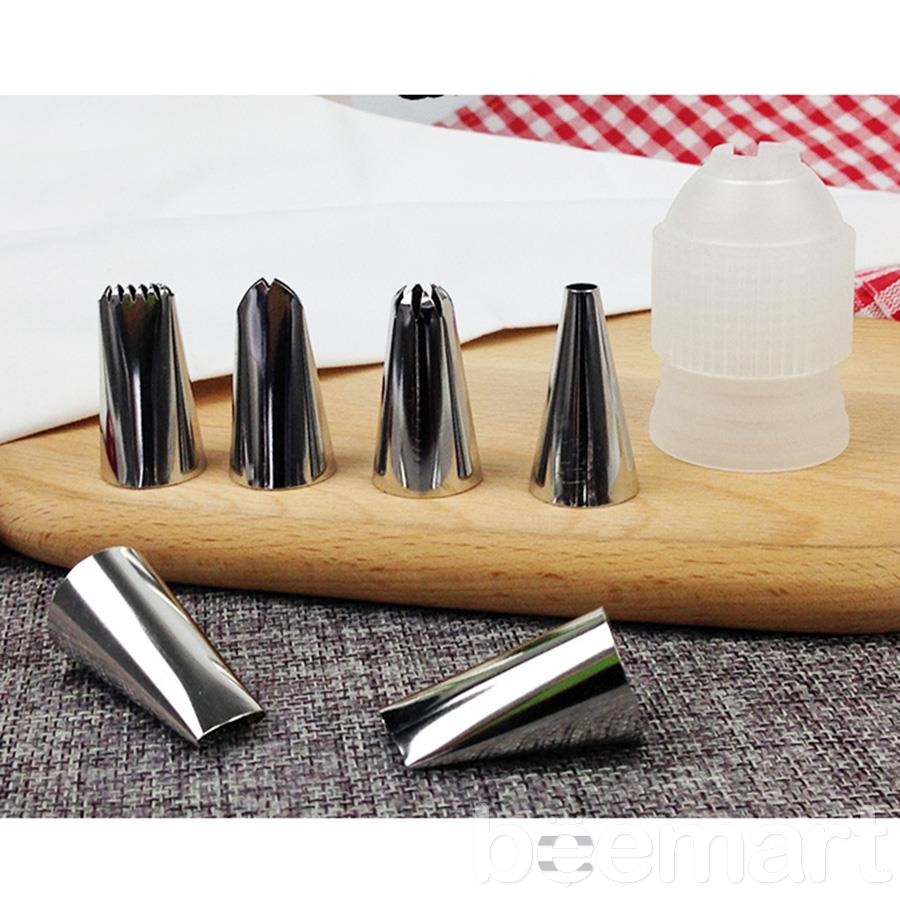 Freeship đơn đầu tiên khi nhập mã "FREEMOI"Trang trí là khâu cuối cùng để hoàn thành chiếc bánh của bạn. Nếu bạn vẫn thầm "ngưỡng mộ" chiếc bánh ngoài hàng được tô vẽ thật cầu kì, thì chính bạn cũng có thể làm được điều đó, đặc biệt chiếc bánh sẽ mang phong cách của chính bạn. Bộ đui kèm túi bắt kem nhỏ sẽ giúp bạn trang trí chiếc bánh không hề khó như bạn tưởng. Nếu như mới bắt đầu làm bánh hoặc không thường xuyên thì bạn có thể trang bị một vài đui cơ bản là đủ. Đui bắt kem thông dụng có thể làm bằng nhựa hoặc inox. Bộ sản phẩm của chúng tôi có chất liệu inox, nên bạn có thể hoàn toàn yên tâm về chất lượng.