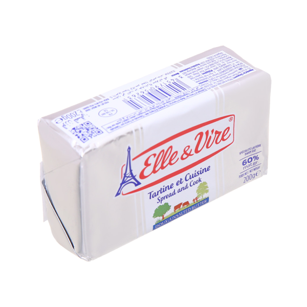 Freeship đơn đầu tiên khi nhập mã "FREEMOI"Bơ lạt 60% béo Elle & Vire 200g là dòng bơ lạt có xuất xứ từ Pháp, độ béo 60%, vị ngọt, thơm nhẹ. Bơ được dùng để làm các loại bánh ngọt, bánh quy, phết lên bánh mì, ăn kèm trái cây.