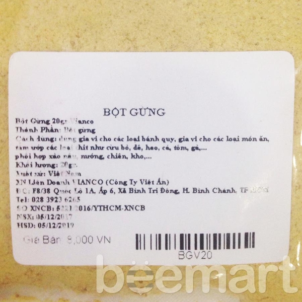 Freeship đơn đầu tiên khi nhập mã "FREEMOI"Bột gừng 20g được làm 100% từ nguyên liệu tự nhiên là gừng tươi, sẽ giúp cho các món ăn, đặc biệt là các món như bánh quy, món tẩm ướp thịt, món xào nấu,... thơm ngon, dậy hương vị hơn.
