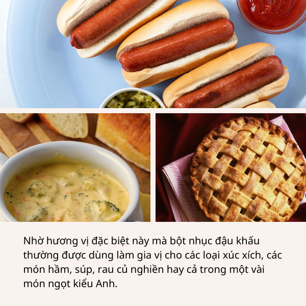 Không chỉ vậy khi kết hợp bột nhục đậu khấu với những loại sốt có vị béo, đặc biệt là sốt Bechamel ( một loại sốt có nguồn gốc từ Pháp) sẽ tạo ra một hương vị vô cùng hấp dẫn đó!