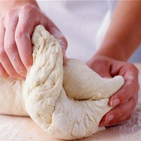 Dùng tay nhào sơ để bột tạo thành khối. Áo 1 lớp bột khô ra bàn, cho khối bột ra và thực hiện thao tác nhồi theo kỹ thuật Folding and Strectching. Lặp đi lặp lại bước này đến khi bột được nhào mịn và có thể kéo sợi.