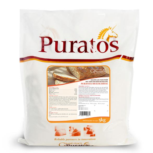 Bột trộn bánh mì ngũ cốc Puravita cung cấp 16% lượng chất xơ hàng ngày. Với thành phần chủ yếu là lúa mì, lúa mạch đen, bột đậu nành, bột yến mạch thô, lúa mạch, sản phẩm sẽ mang lại hương vị thơm ngon đặc trưng của ngũ cốc, chứa hàm lượng dinh dưỡng cao và cung cấp khoáng chất cho cơ thể.