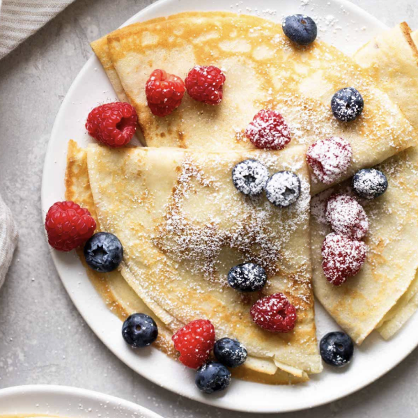Xoay nhanh và tráng đều tới khi bánh chín vàng. Tiếp tục tráng các lớp bánh tiếp theo rồi xếp chồng lên nhau và thưởng thức. Có thể trang trí với các loại hạt khô, hoa quả, kem tươi,...