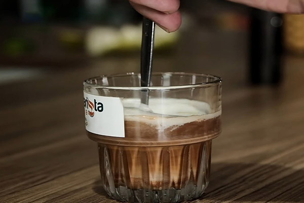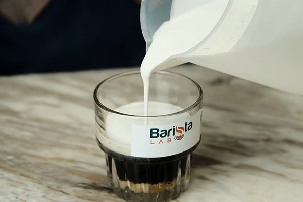 Cà phê chiết xuất xong thì lấy phin ra, cho 25ml sữa đặc vào. Tiếp đến, rót từ từ 15 – 20ml kem mặn vào ly cà phê. Có thể rắc thêm một ít bột cacao lên bề mặt thức uống cho đẹp mắt.