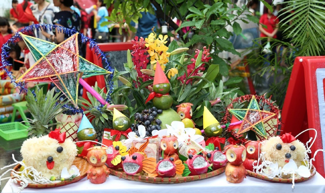 Mâm cỗ Trung thu của người Việt thường không có đồ ăn mặn mà sẽ gồm bánh trung thu, mâm ngũ quả, nhang đèn, mặt nạ, đèn ông sao,... Để có được một mâm cỗ Trung thu đẹp mắt, bạn phải biết cách bày biện các loại hoa quả, bánh trái trên mâm cỗ sao cho màu sắc hài hòa nhất.