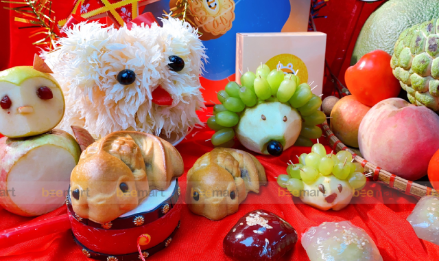Mâm cỗ Trung thu với nhiều tạo hình con vật lạ mắt