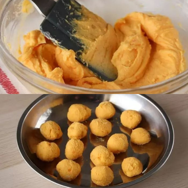 - Lòng đỏ trứng muối đã chín, các bạn sử dụng dĩa nghiền nhuyễn trứng muối, để tiết kiệm thời gian, các bạn có thể đem trứng muối xay cùng hỗn hợp bơ sữa đến khi thu được hỗn hợp sánh mịn.