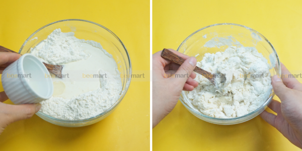 Bước 2: Trộn bột vỏ bánh (thêm chất lỏng)