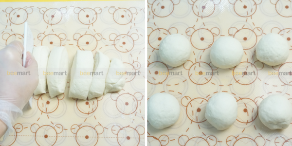 Chia bột vỏ thành 6 phần bằng nhau và vo tròn lại.