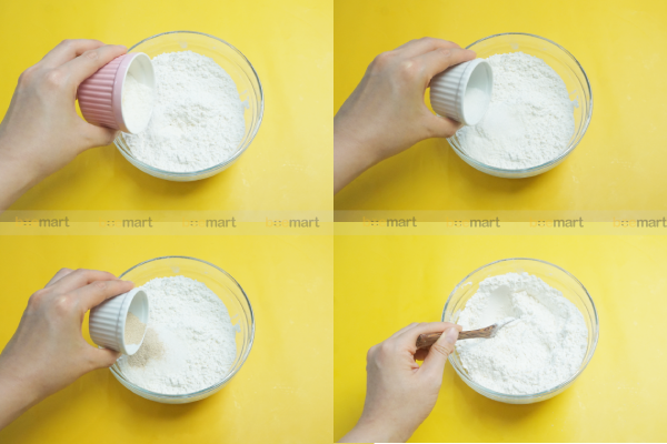 Bước 1: Trộn bột vỏ bánh (bột khô)