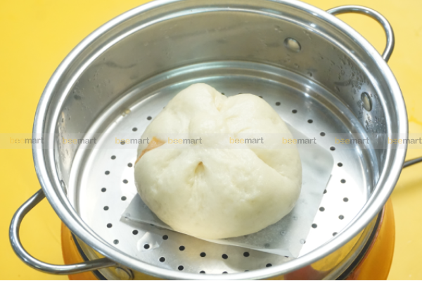 Chuẩn bị 1 cái xửng hấp, lót giấy nến vào bánh bao. Khi nước sôi nhẹ thì đặt bánh vào và hấp trong 8 - 10 phút là bánh đã chín.