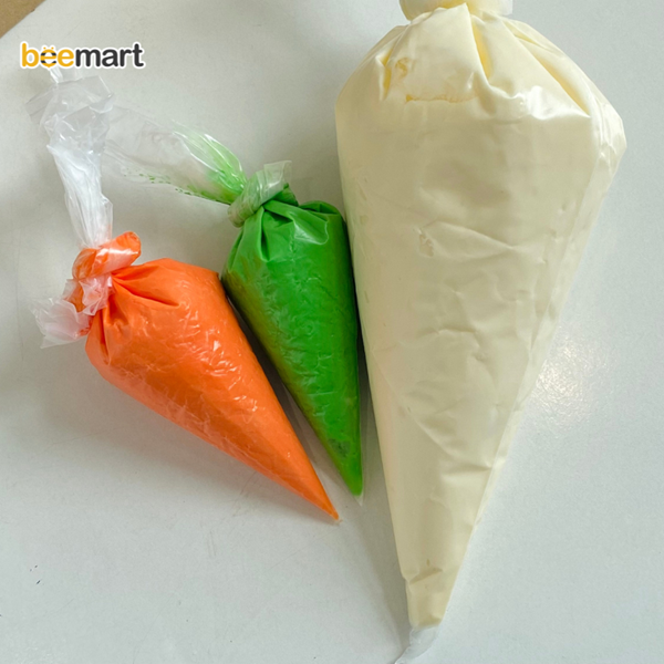 - Cho hỗn hợp vào túi bắt kem. Có thể để lại 2 phần nhỏ pha màu để vẽ trang trí bánh cho đẹp.