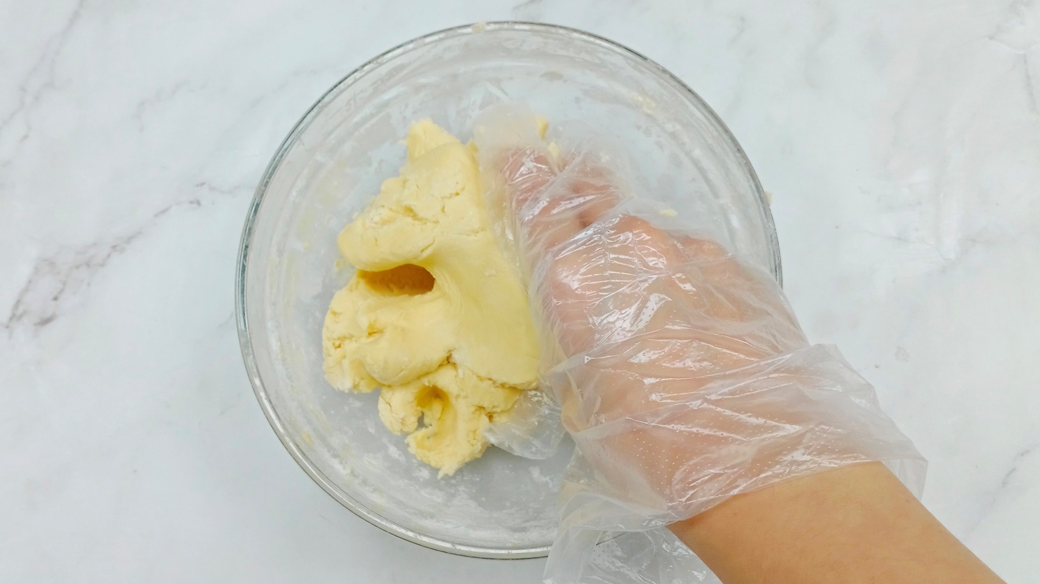 - Tiếp tục rây 200g bột mịn và cho vào hỗn hợp trên, tiếp tục dùng Spatula ( phới trộn) trộn đều hỗn hợp. Dùng tay để tiếp tục nhào bột để bột dẻo và mịn, bột không dính tay nữa là được.Đậy kín bột và để bột nghỉ khoảng 15 phút