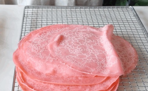 Tips: Sau khi chiên xong từng lớp vỏ có thể dùng giấy thấm khô và lau sạch chảo trước khi làm lớp vỏ tiếp theo. Nó có thể giúp hạ nhiệt và chiên đều các lớp vỏ hơn