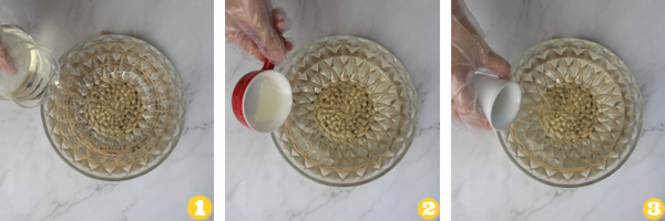 - Cho nước đường, dầu ăn, tinh dầu hoa bưởi vào trong một chiếc tô, khuấy đều cho hòa quyện.