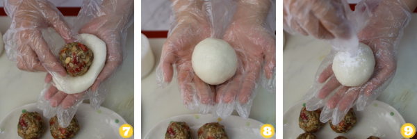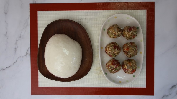 - Bước 4: Chia nhân thành từng viên khối lượng 50gr, rồi vo tròn lại.