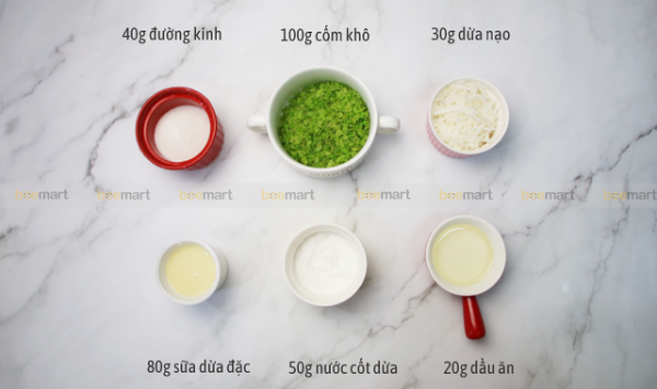 Nguyên liệu làm bánh dẻo cốm dừa vỏ trà xanh