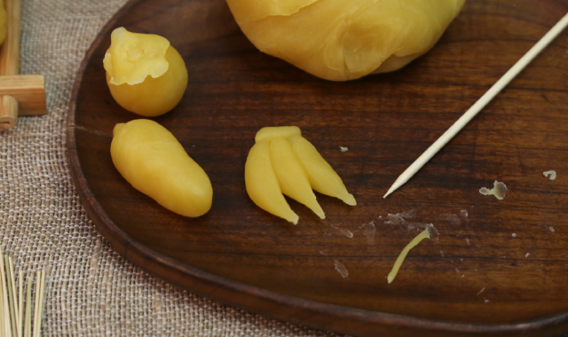 - Lấy 1 phần nhân đậu xanh rồi nặn theo hình thuôn dài để làm quả khế