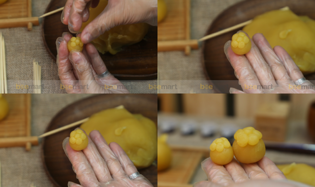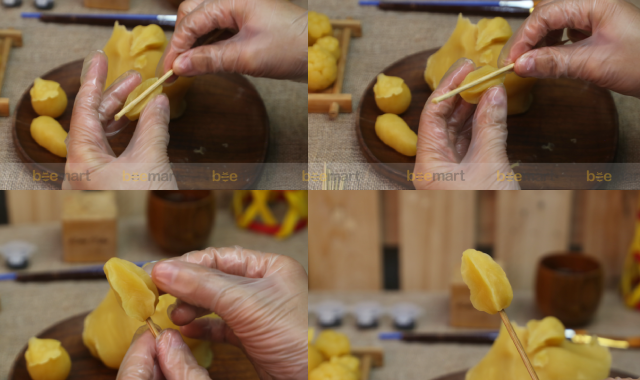 - Lấy một phần nhân đậu xanh nhỏ rồi vo tròn lại để tạo hình thành quả măng cụt