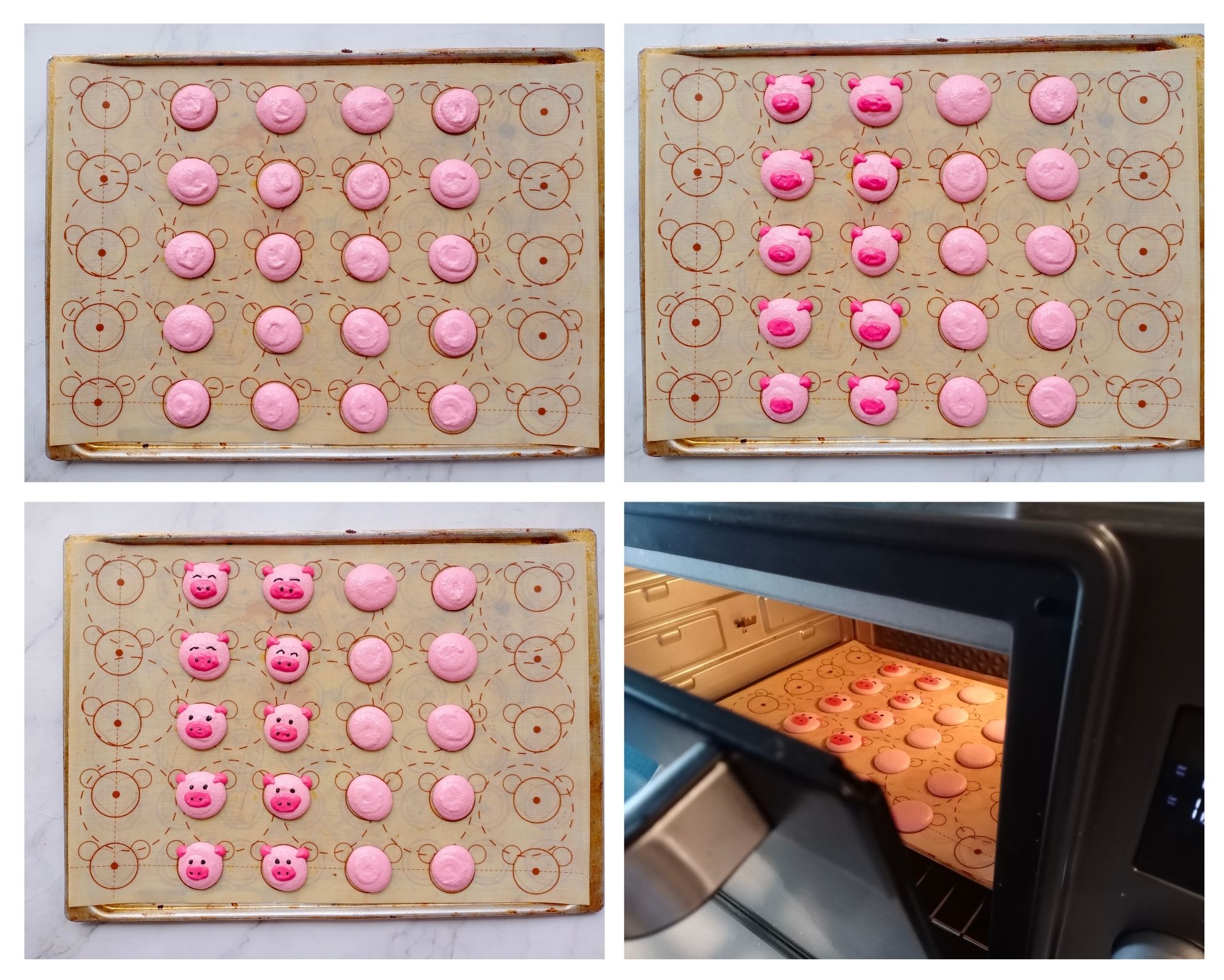 Bước 3: Tạo hình lợn hồng với vỏ bánh macaron và nướng bánh