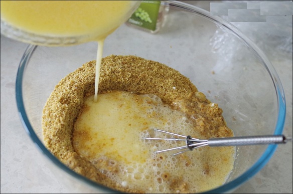 Bước 1: Trộn đều hạt lanh đã xay với đường, muối và bột nổi. Tiếp tục đánh đều trứng, 1 chút dầu ăn và nước với nhau, sau đó cho từ từ hỗn hợp này vào hỗn hợp hạt lanh hồi nãy, trộn đều.