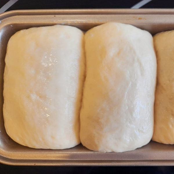 Xếp các viên bột đã cuộn vào khuôn có bôi 1 lớp dầu ăn mỏng. Ủ bột lần 2 trong 40-70 phút (phủ khuôn bằng khăn sạch để mặt bột không bị khô). Có thể dùng khuôn loaf hoặc khuôn tròn